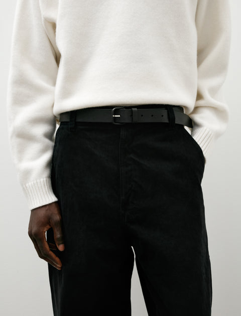 A classic, simple belt cut from a soft yet sturdy, veg-tan, calf skin with a subtle fine grained texture in black. With wear the leather will soften further, developing a glossier surface as the patina emerges. Completed with a leather wrapped buckle that blends softly into the surface for a minimal appearance.