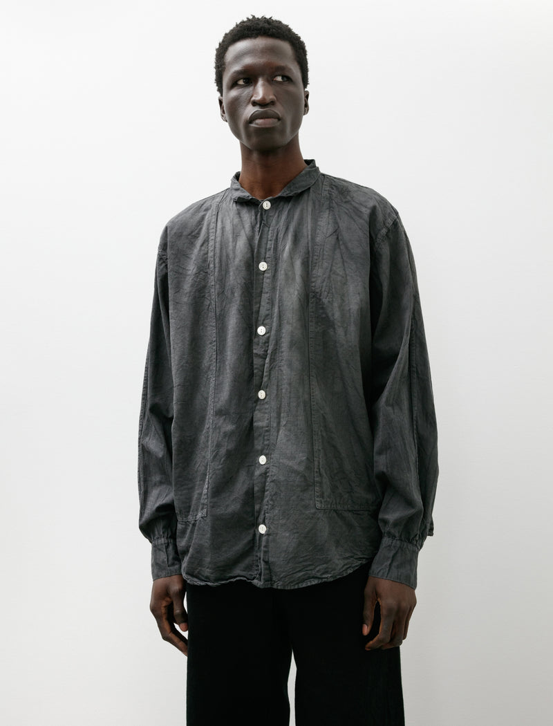 A square framed cross body satchel cut from a lightweight, super dense cotton canvas lined with Tender’s cotton beekeeper check that has been overdyed using their “Black Hole” dye process. Features a unique construction method using a single piece of fabric that is folded and wrapped to create the bag cavity and a foldover closure. The backing fabric is separated from the shell along the side seams and sewn shut to seal off the interior, creating a sort of window at the base. Completed with an adjustable strap cut from a sturdy, cotton webbing; brass hardware.
