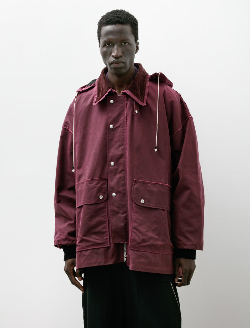 Relaxed fitting, long rise jeans with a slight taper cut from a super dense Japanese indigo denim in a light wash. Feature a zip fly with no top closure, curved front slash pockets and rear patch pockets with raw edges, and an unfinished waistline for Camiel Fortgens' signature deconstructed detailing. Cut with a gentle curve from the hip to the knee for a soft silhouette that tapers gently to the hem but appears to have more of a straight leg. Constructed with flat felled seams through the seat and inseam for long lasting finish.