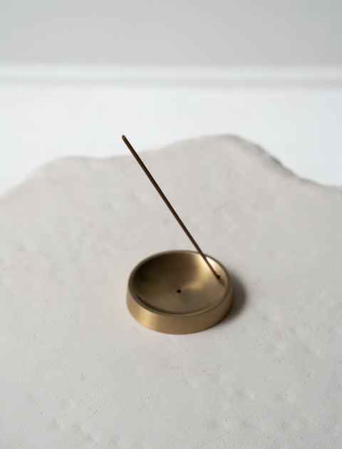 A handmade incense holder shaped from a solid piece of brass, which will patina beautifully over time. Two holes of the same size are provided so you can position incense sticks vertically or at an angle. Each is hand-made so natural variations in the surface will occur.