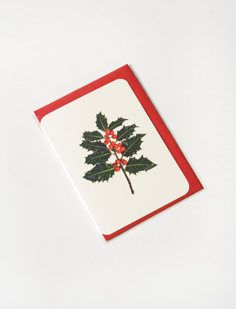 Season's greetings! A sprig of holly adorned with berries to usher in holiday celebrations or celebrate the birth of our favourite wintery friends. Photographed by Alexandra Simms and printed in England on luxurious Italian paper. Perfect for wedding wishes, gift wrapping lovers, or adding a special touch to any beautifully wrapped gift.