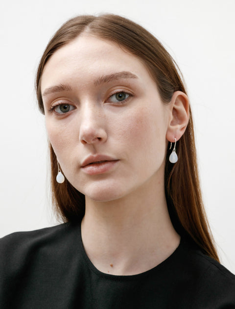 Handmade in Paris, these drop earrings make a great statement piece that’s subtle to the eye. It features a sterling silver hook attachment, contrasting to the glass bead that seemingly traps light inside. These earrings are raindrops for the ears, reflections of the world through the looking glass.