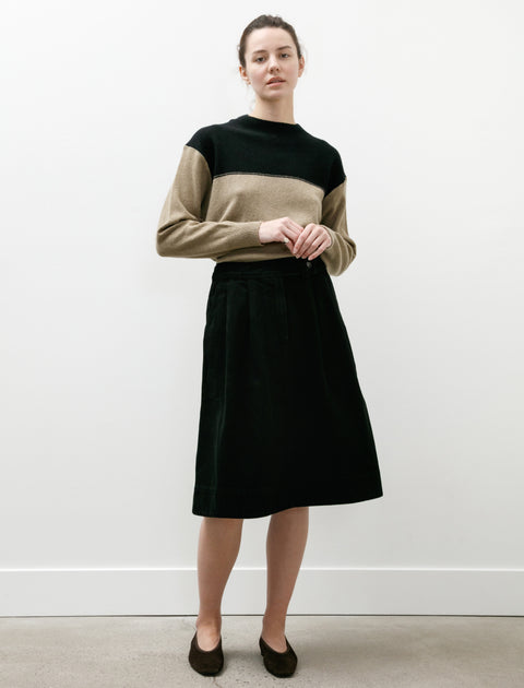 This denim skirt embodies Margaret Howell’s timeless approach to functional design and everyday wearability. Cut to a regular A-line silhouette with a mid-calf length, it’s made from a midweight cotton denim twill with a soft, lived-in hand that will develop character with time. An extended waistband with loop and denim button fastening, slant pockets with a ticket pocket, and a concealed back flap pocket give it a subtle utilitarian feel. Finished with deep stitching at the hem, this skirt offers an effortless balance of structure, ease, and durable craftsmanship.