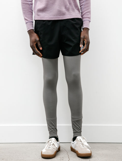 Tight fitting base-layer, thermal tights cut from an innovative Nilit textile employing coffee charcoal in a smokey medium grey. Features an internal drawstring, rear hip pockets, and contrast ripstop patches at the back knee to reduce bulk when bending the leg. The CoffeeThermal provides insulation through a brushed micro fleece backing, moisture wicking, and four-way stretch for excellent range of motion. Constructed using flat locked seams throughout for a low-profile interior that reduces abrasion to a minimum.
