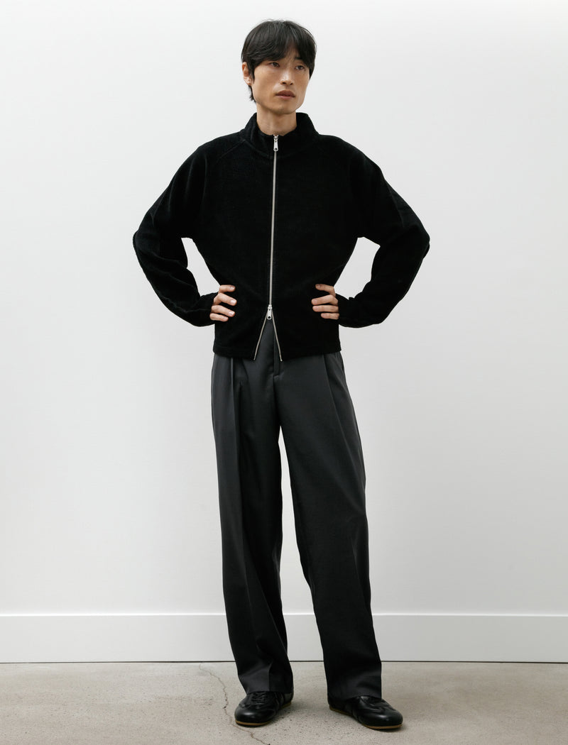 Relaxed fitting, straight legged jeans cut from a soft, washed cotton denim in a cool slate grey. Feature a zip fly, a tack button closure, mfPen's signature J curve front pocket openings, rear patch pockets, and the trademark blank fabric patch at the waist. The easy, straight leg sits with subtle space around the body, lending a sense of timeless everyday utility that is endlessly wearable. Constructed using chain stitched, flat felled seams throughout for improved durability at regions of frequent wear.
