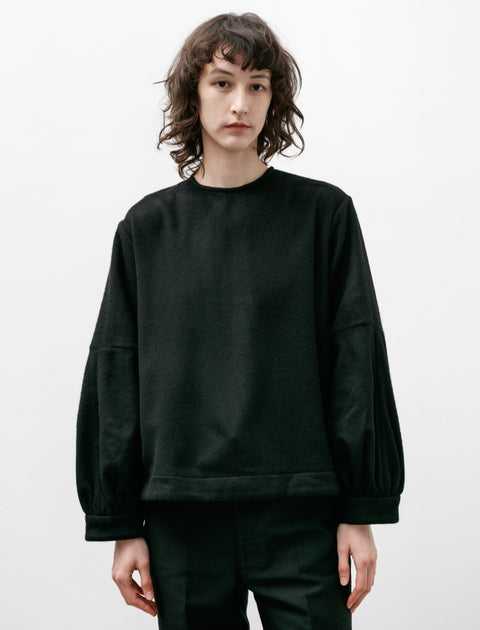 A top made to be worn for any occasion. The Biggy top has a round neck with a button closure at the rear. Made entirely of cashmere, it feels buttery soft on the skin. Its straight hems help highlight its boxy silhouette, while voluminous sleeves feature gathered pleats which create a playful element. Additional details include side slits at the hemline and a little more length in the back. Pair it with your favourite denim for a casual day out or with an elegant skirt for a more formal look.