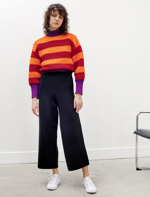 Loungewear made to leave the house! Chic and cozy cropped trousers in CFCL’s dense but not too heavy Milan rib knit. Midrise with an elasticated waist and room through the legs. Their fine knit design leaves a smooth and luxurious feel against the skin.