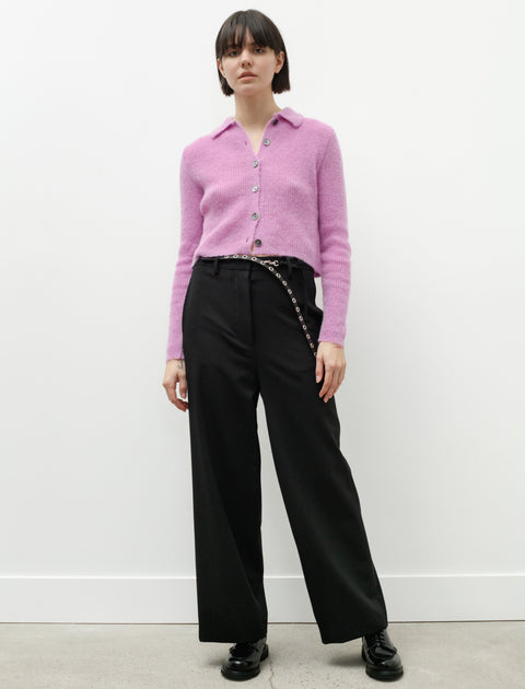 Another fab trouser from Hache. This season, the skater pants are upgraded with a removable eyelet leather belt and constructed in a fine stretch wool suiting. They have side seam pockets, as well as a single welt at the rear. With a wide leg and a slightly dropped crotch, they have the louche, cool factor we crave with a sensibility that will deliver season after season.