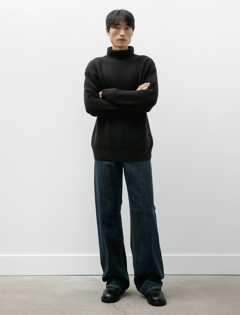 Wide fitting, straight legged trousers cut from a luxuriously soft, buttery, brushed double face wool/cashmere in black. Feature a zip fly with a two-point button closure, and front on-seam pockets. Extremely reduced in their design, the eye is drawn to the column-like silhouette that tends to sit away from the leg; the body of the double-face creates a pleasing sense of weighty movement that evokes an effortless, graceful elegance. Double-faced construction eliminates internal seam allowance, creating a clean interior that is an absolute joy to wear; horn buttons.