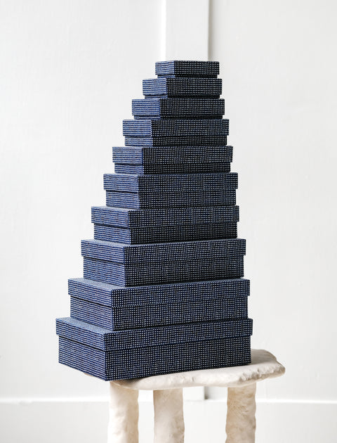 Nestled within each other, these boxes are covered in Japanese washi paper that has been silkscreened in bright and graphic patterns. Use them for storage as gifts, whatever you like.