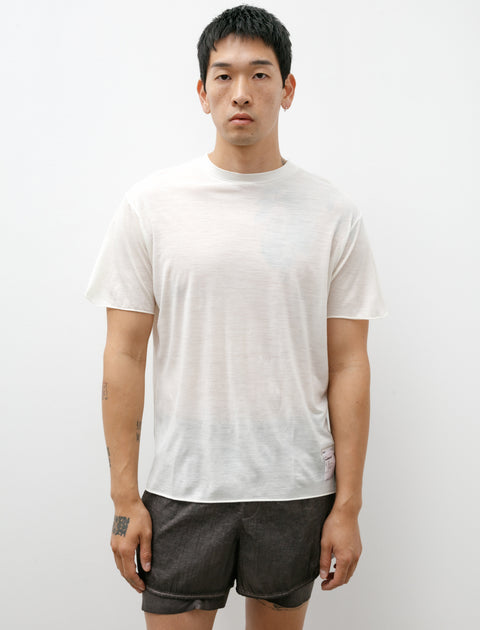 A relaxed fitting boxy t-shirt cut from a super lightweight merino jersey in a soft chalk white. Designed to keep you cool and dry, the merino offers exceptional moisture and temperature control while remaining light to the touch and preventing offensive odours. Sewn with extremely low profile seams and raw hems to minimize abrasion and provide a smooth, barely there finish; reflective logo print at the rear right shoulder to provide improved visibility in dark conditions.
