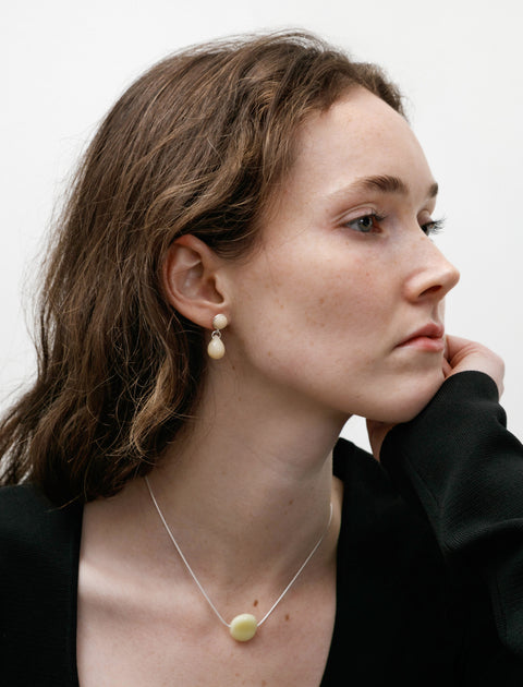 Timeless and elegant, these dainty earrings from Sisi Joia are always a great choice. Handmade in Paris, they have a circular glass bead surrounded by sterling silver with a droplet shape bead dangling below. Perfect for any occasion, these earrings immediately elevate any look.