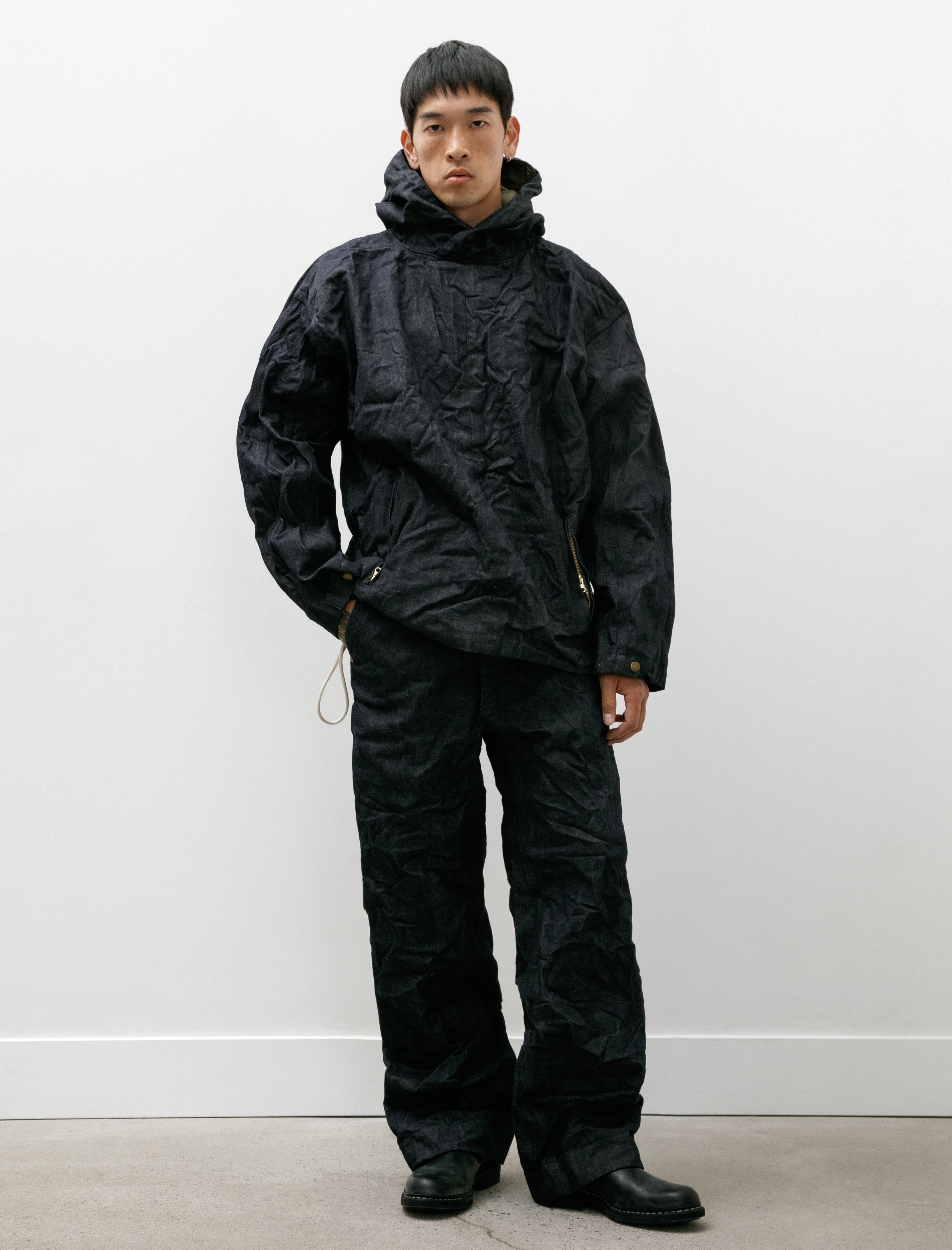 Working represents the synthesis of two seemingly divergent sensibilities born from the idiosyncratic collaboration between William Kroll of Tender and Robert Newman of Middle Distance. Blending influences from Kroll’s obsession with the steam age and Newman’s embrace of the technical cutting edge, each garment bears an aura of time-bending functionality. Familiar details from each perspective are blended with impressive skill, re-skinning history and future to become one through jointly developed, proprietary construction and dye methods.