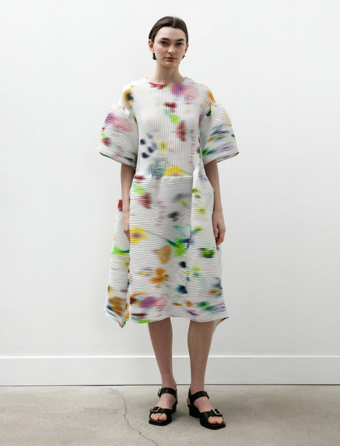 Printed Silk Dupion Isabella Dress Painterly Checks with Tulips
