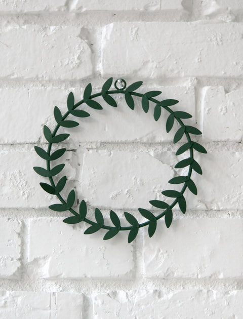 A darling little metal wreath with a timeless design that goes beyond just the holiday season. Made of iron, it is easy to pin up on a door or to tie up as an ornament. A simple way to add some subtle charm to your space.
