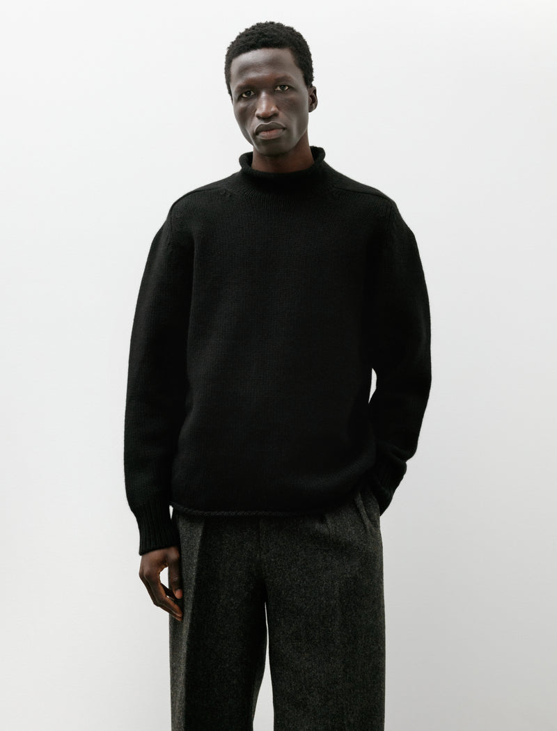 A relaxed fitting pullover hoodie cut from a super fine 160 gauge wool jersey with a high pile fleece backing in a deep charcoal grey. Features a drawstring at the hood, a kangaroo pocket, ribbed cuffs, and a ribbed hem. Raglan sleeve construction provides a natural roll line at the shoulder allowing the silhouette to hang gracefully with soft plush drape throughout the silhouette. Remarkably warm for its weight, the 160’s hoodie offers a sense of comforting protection without feeling weighty.