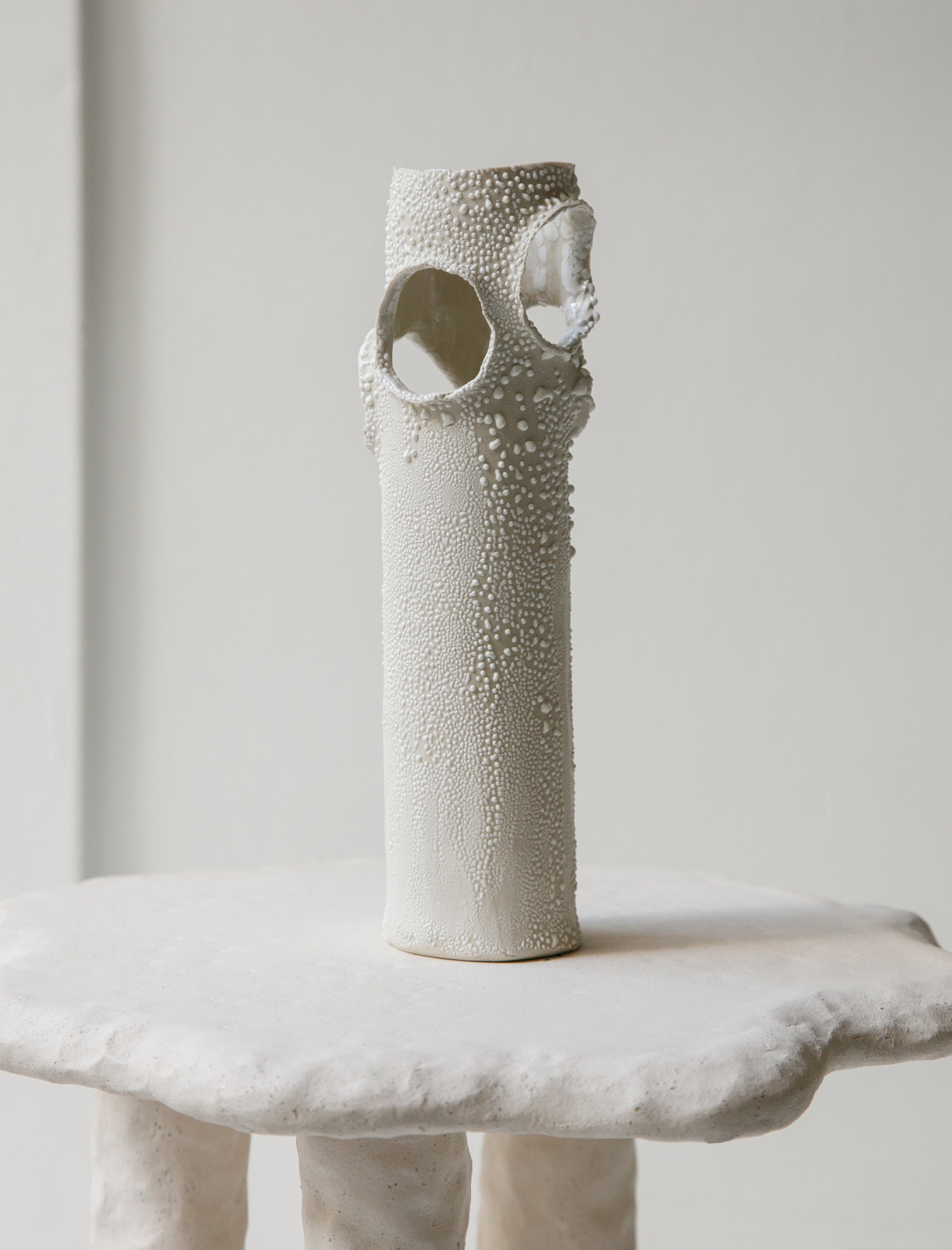Nathalee draws her inspiration from the essence of nature and captures life in each of her ceramic pieces. The ceramics transcend the spaces around them into organic coexistence. Each of her creations is entirely unique, striking up subtle conversations with artists as varied as Lucio Fontana, Asger Jorn, Franz West, and Mary Heilmann.