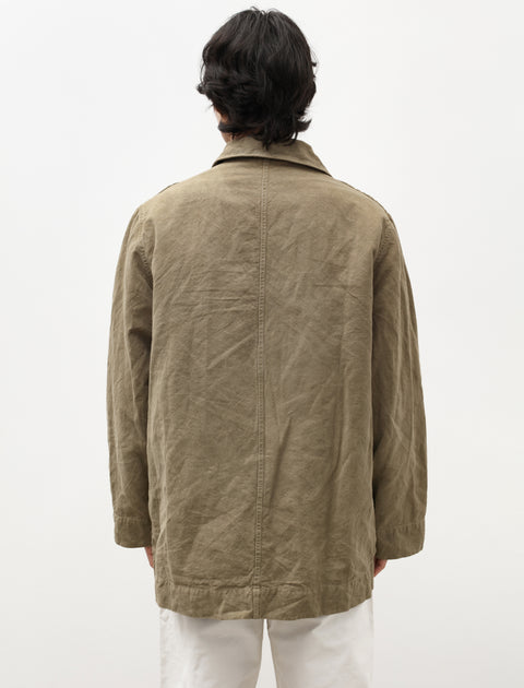 Coming to Paris by way of London from his home of Waitakere, New Zealand, Oliver Church works to eschew the traditional business model of the garment industry in favor of an approach that is decidedly more personal. Each item is cut, sewn, and finished personally by Oliver in Paris. Due to France’s rich history of hemp, linen, and cotton textile production, Church opts most often for vintage and reclaimed fabrics in his sourcing process. The age of the fabric adds both character and a sense of timelessness that connects us to the past though the designs themselves are modern in proportion. Most often naturally dyed by Oliver himself, there are further layers of life added to each item and they are not only expected but encouraged to change over time. Each item is meticulously finished by hand, almost all with hand sewn buttonholes, lending each one a distinctive aura. Due to the nature of his production methods, quantities are limited to a mere twenty pieces a month and are made to order. Each garment is accompanied by a cotton garment bag for storage.