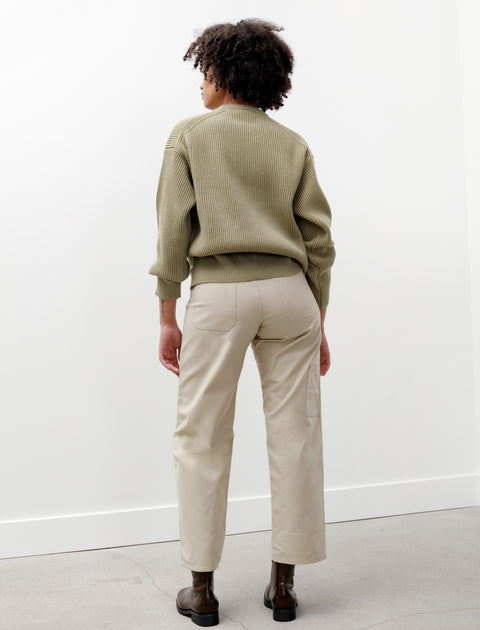 These workwear-inspired pants are a timeless shape to add to your wardrobe. The color makes them easy to wear with most things, without the fuzz of a bright white pant. The leg is straight and long with a slight taper at the ankle. Including all the classic hardware, reinforced front patches, and some extra pockets.