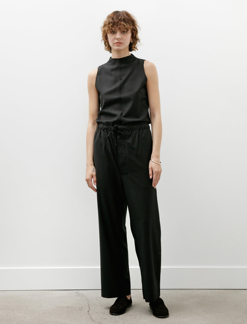 No. 288 Fine Wool Drawstring Trousers Black Herringbone