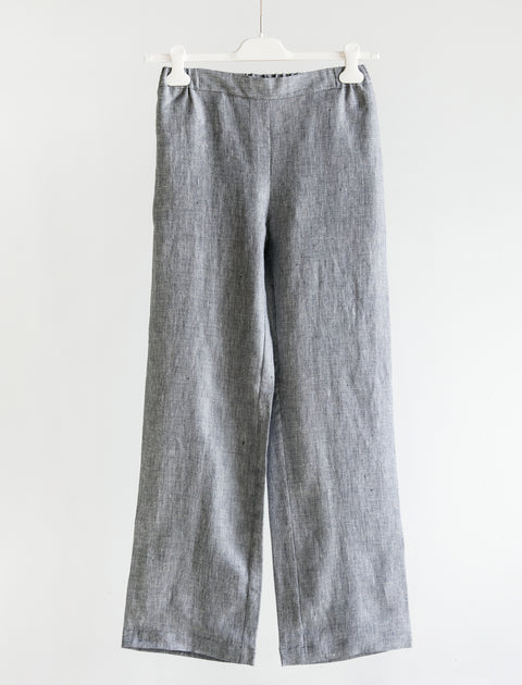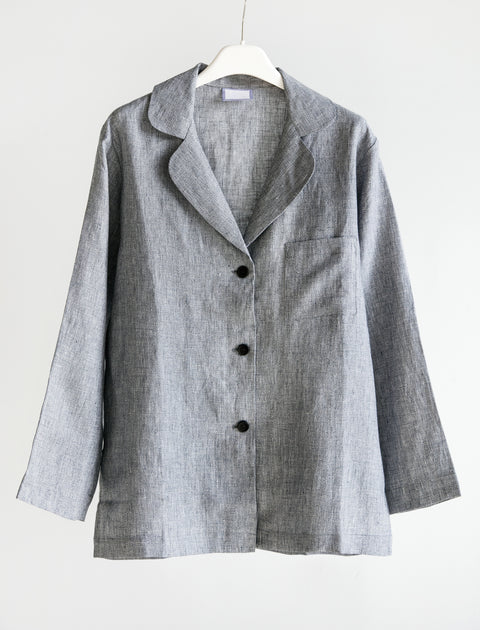 The first cut of pyjama from Rest, designed to be comfortable in and out of bed. The deep V neck allows for easy application of creams and lotions in your nighttime routine, the sleeves are slightly cropped so they don’t drag. The slim leg pants are high waisted with a flat front and an elastic at the back, making them flattering on all figures and also comfortable, with pockets so you always have a place to hide your hands. A midweight linen, which washes to rumpled perfection. If at first you feel the fabric is slightly itchy, please trust us that that washes out and into exactly what you want from a linen pyjama.