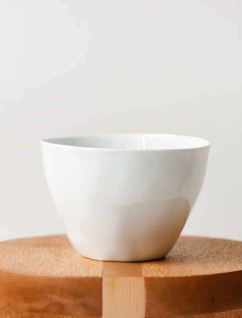 A deep salad bowl, great for serving or even as a fruit bowl. The irregularities in its shape are created during the traditional porcelain-casting method and only add to its charm, ensuring each is slightly different.
