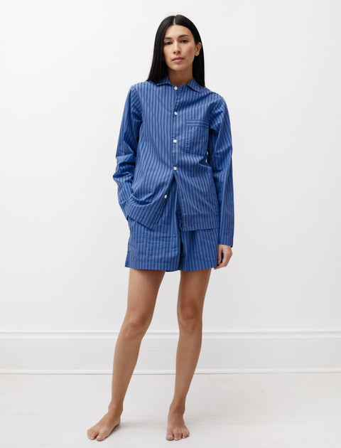 Tekla's unisex sleepwear is cut from 100% organic poplin cotton with a soft hand and crisp appearance. Ideal for lounging at home or a restful slumber, there is nothing keeping you from wearing them outdoors. Designed with your comfort in mind and stonewashed for extra softness, these vivid blue pyjama shorts are finished with a dark stripe. Mix and match with the shirt to create your perfect pair.