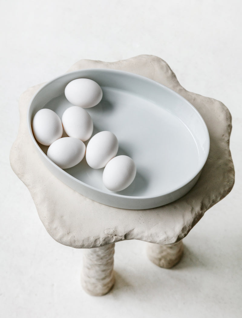 A deep salad bowl, great for serving or even as a fruit bowl. The irregularities in its shape are created during the traditional porcelain-casting method and only add to its charm, ensuring each is slightly different.