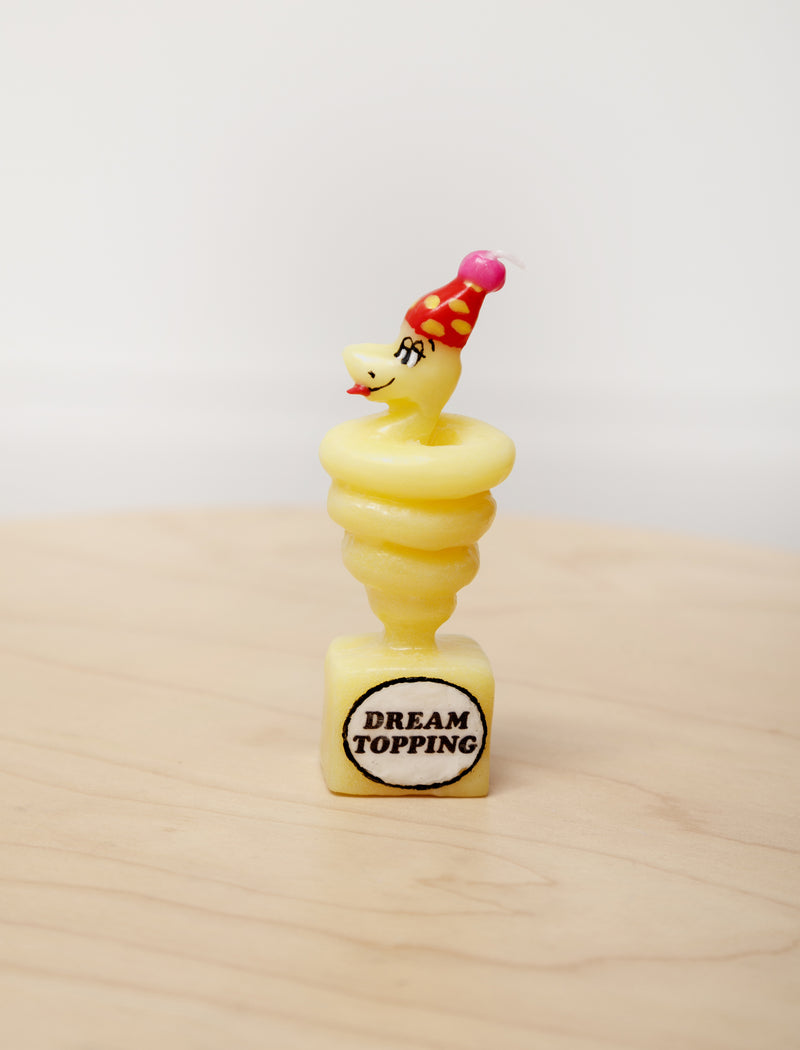 Sweet little yellow snake, all coiled up sporting a red party hat and a big ol’ grin. This fella would make the perfect birthday cake topper!