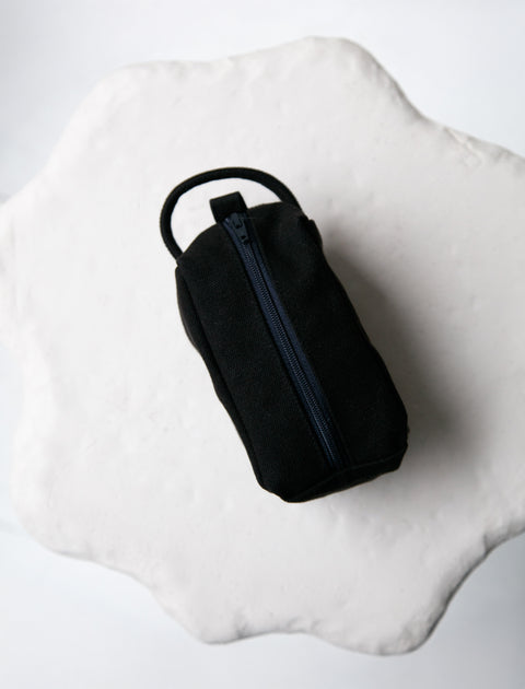 A handy zippered bag to store your belongings Made from a sturdy cotton twill in this beautifully deep midnight colour, the cube shape leaves ample room to stash your stationary or to take your makeup on the go.