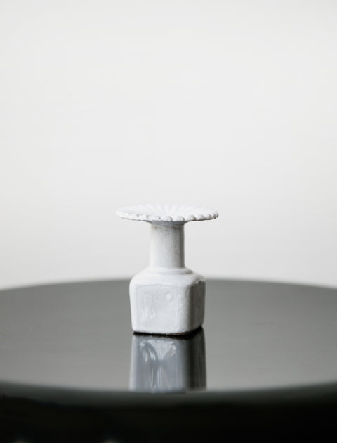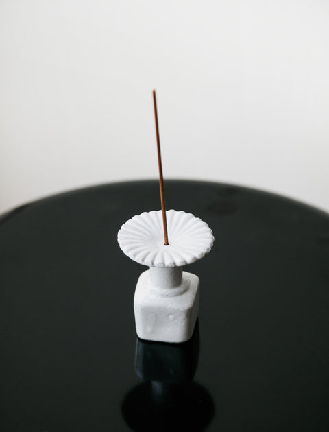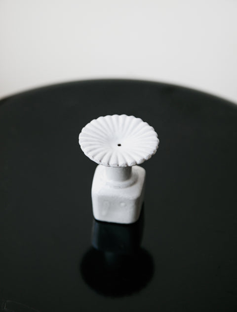 This incense holder is handmade in Astier de Villatte’s Paris workshop from black terracotta using traditional methods and finished with a white enamel glaze. It has a square base with a wide fluted rim. Featuring subtle inconsistencies, each piece is completely unique, and engraved with the brand’s signature crest alongside the initials of the artisan who created it.