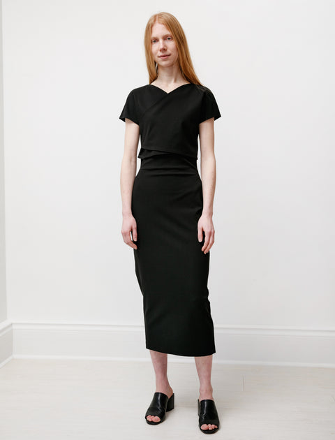 Simplicity itself, this highwaisted skirt pairs with everything you own already. Cut from a heavy weight stretch jersey, it hugs the body in all the right ways, while keeping some structure. Pair it with the Dusan wrap top for a trompe l'oeil dress.