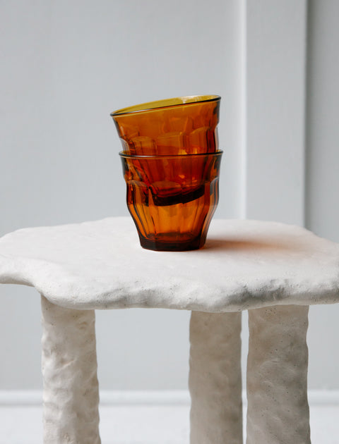 Tipsy was born when French canteen glasses were fired in a kiln, melting into wonky tumblers. Each one is uniquely shaped and thoughtfully made for the table.