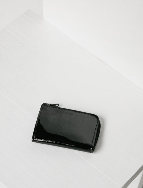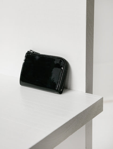 This zipped wallet comes in a compact card size, executed with a lustrous and equally soft patent leather. It features two interior slots within for easy access, an accordion fold for added volume and is finished with a high grade Riri zipper.