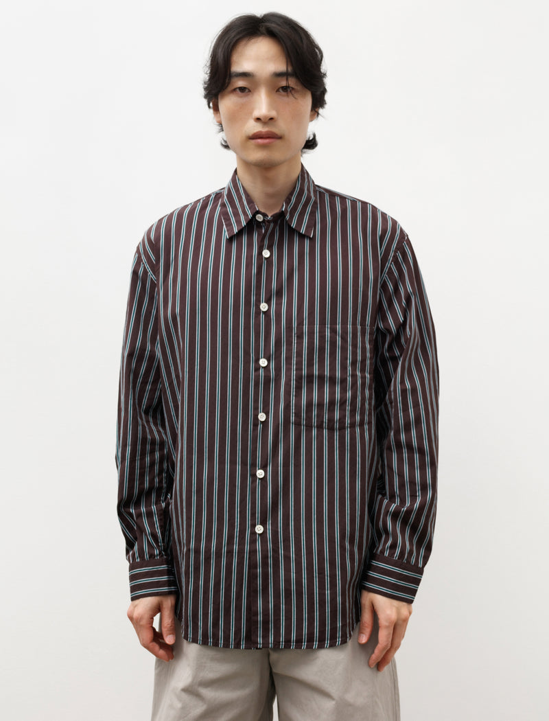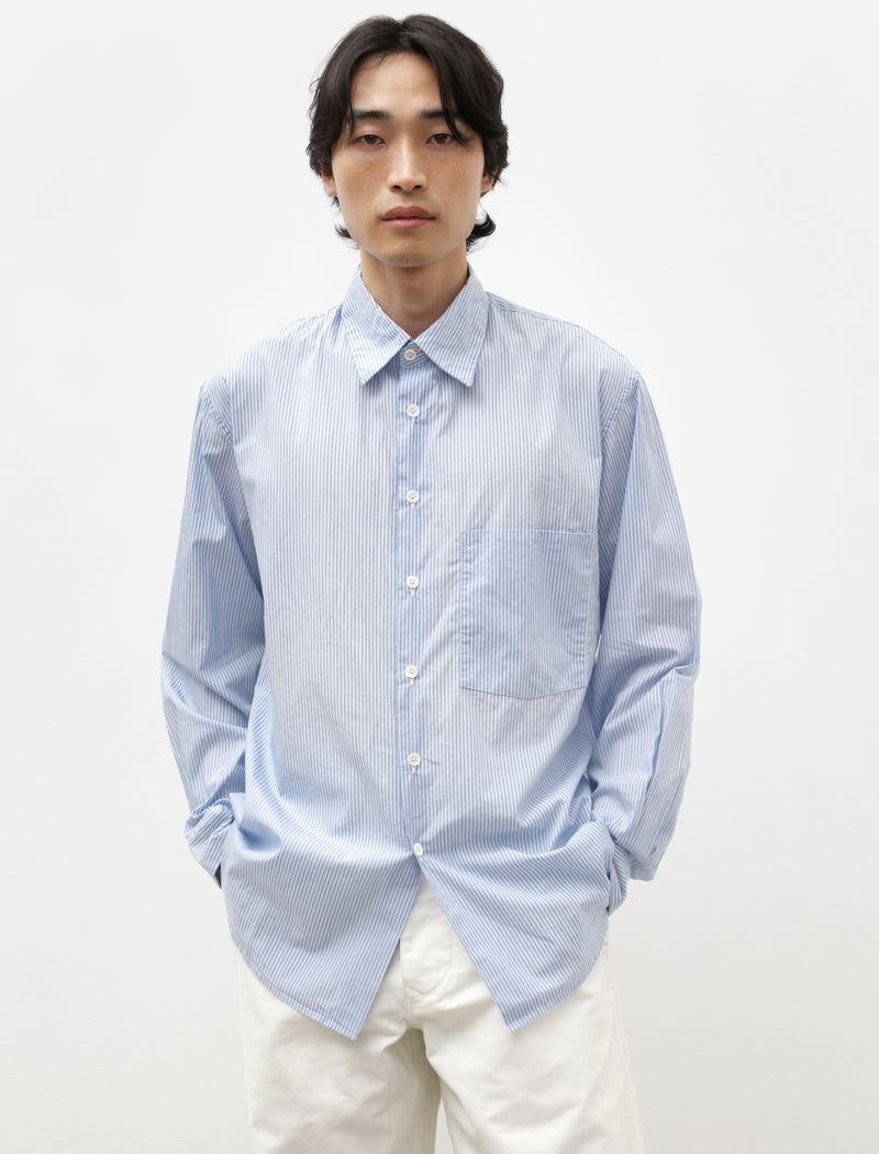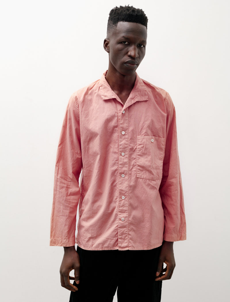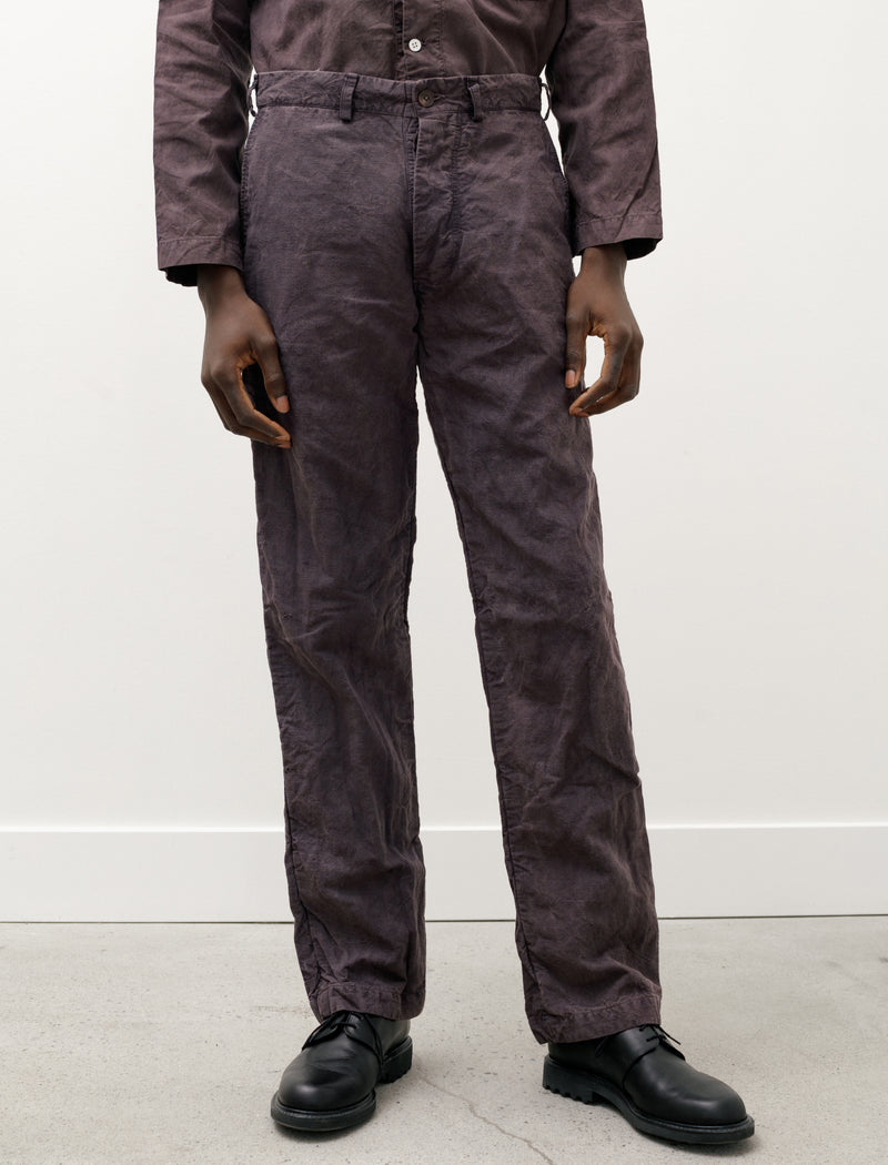 Built from heavy weight antique linen (100+ years old) this generously proportioned shirt will soften and darken with washing and wear. Features a strap style button placket that extends only to the end of the buttons. Clean finished two-piece yoke is constructed with contrasting Japanese cotton at the interior; moreover, a large box pleat at rear yoke. Split side seams are reinforced with hand-sewn gusset binding, and flat felled seams throughout.