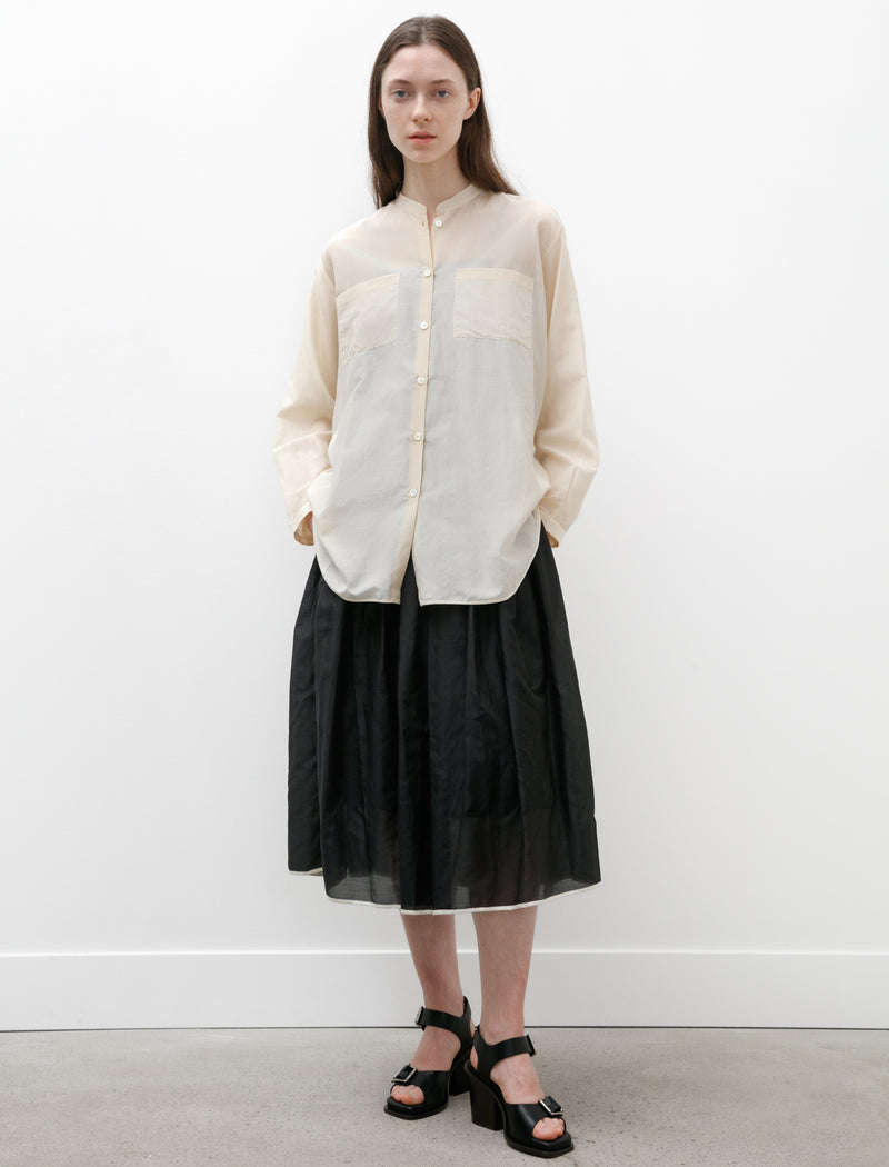 Light and airy, this skirt is cut from a cute striped cotton-silk skirt and has a flattering A-line silhouette. The simple nature of this skirt allows it to easily be paired with your favorite blouse for an easy breezy fit. Additionally, it is designed with an elasticized waistband, a buttoned side opening and contrasting piped detailing along the hem and waistband.