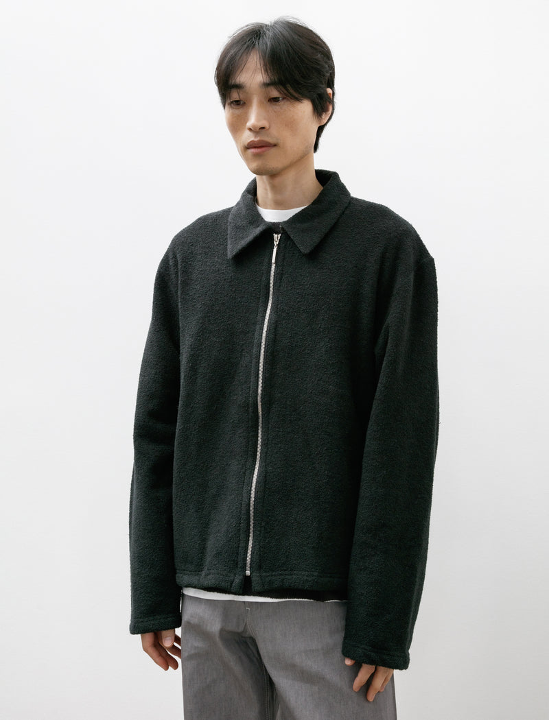 An easy dress coat cut from a luxuriously soft, buttery, brushed double face wool/cashmere in black. Features a narrow notch lapel with a narrow collar, a concealed single snap closure giving the impression of a self closing fabric, and hand pockets at the waist. Incredibly refined detailing throughout highlights the soft drape of the double faced cloth while a unique kimono-inspired sleeve construction method offers ease at the shoulder but controlled volume at the sides. Double faced finishing leaves a remarkably clean interior that is a joy to wear.