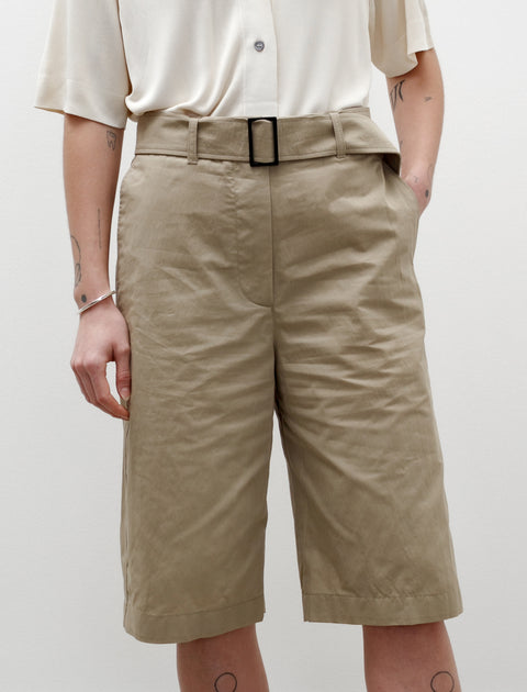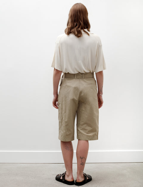 Straight-legged cotton shorts that feature a crisp finish and clean lines for a sharp silhouette. Cut longer, they finish above the knee for a distinguished touch; elevating any look with their smart character. Additional details include a zip fly, side seam pockets and Studio Nicholson’s signature slide buckle belt.