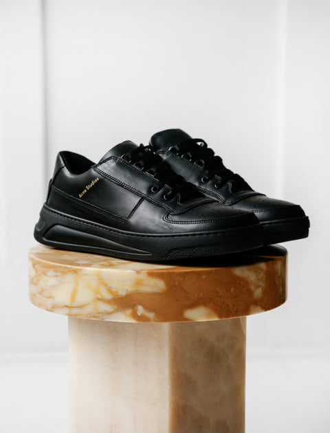 The Perey Lace Up is a calfskin leather sneaker in a classic walker shape with modern details. A full-grain leather upper is contrasted with mesh lining and matte rubber outsole. An asymmetrical lacing system features both d-ring and eyelets. Rubber patch logo at heel.