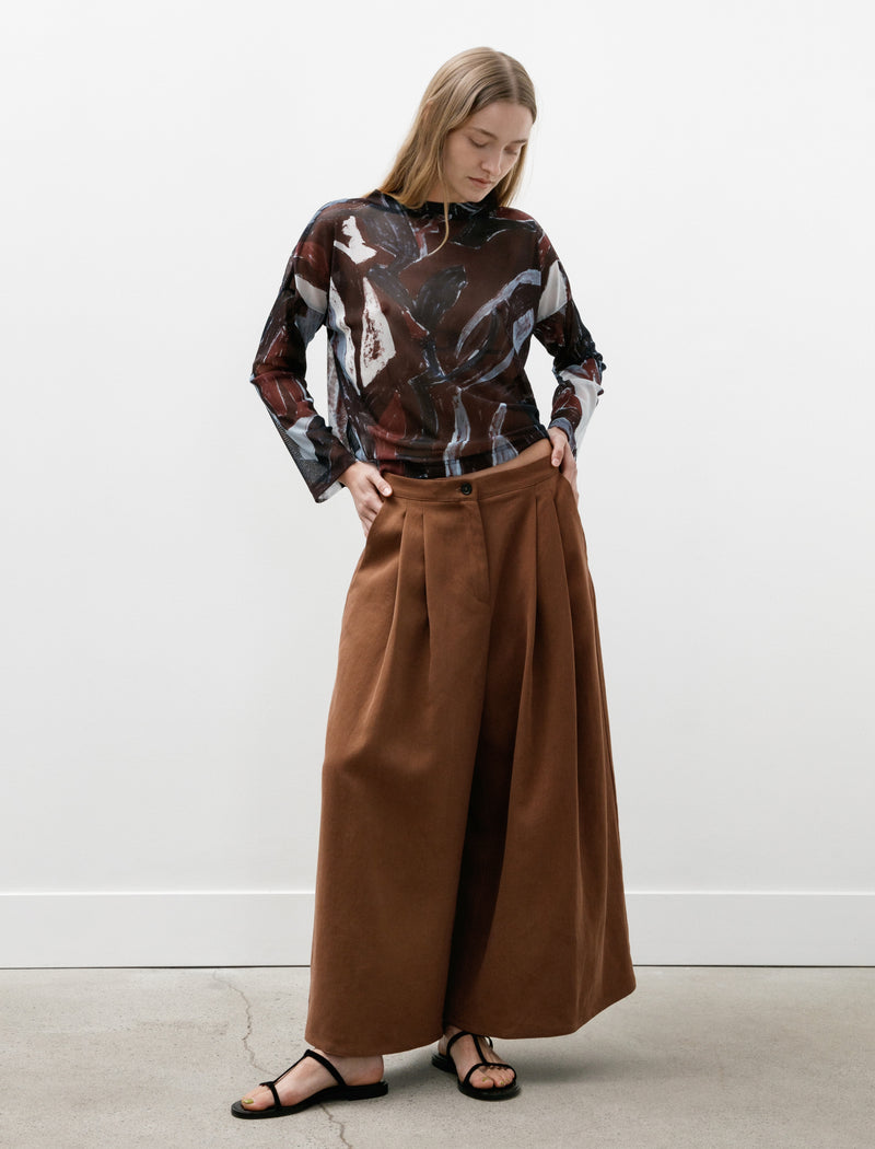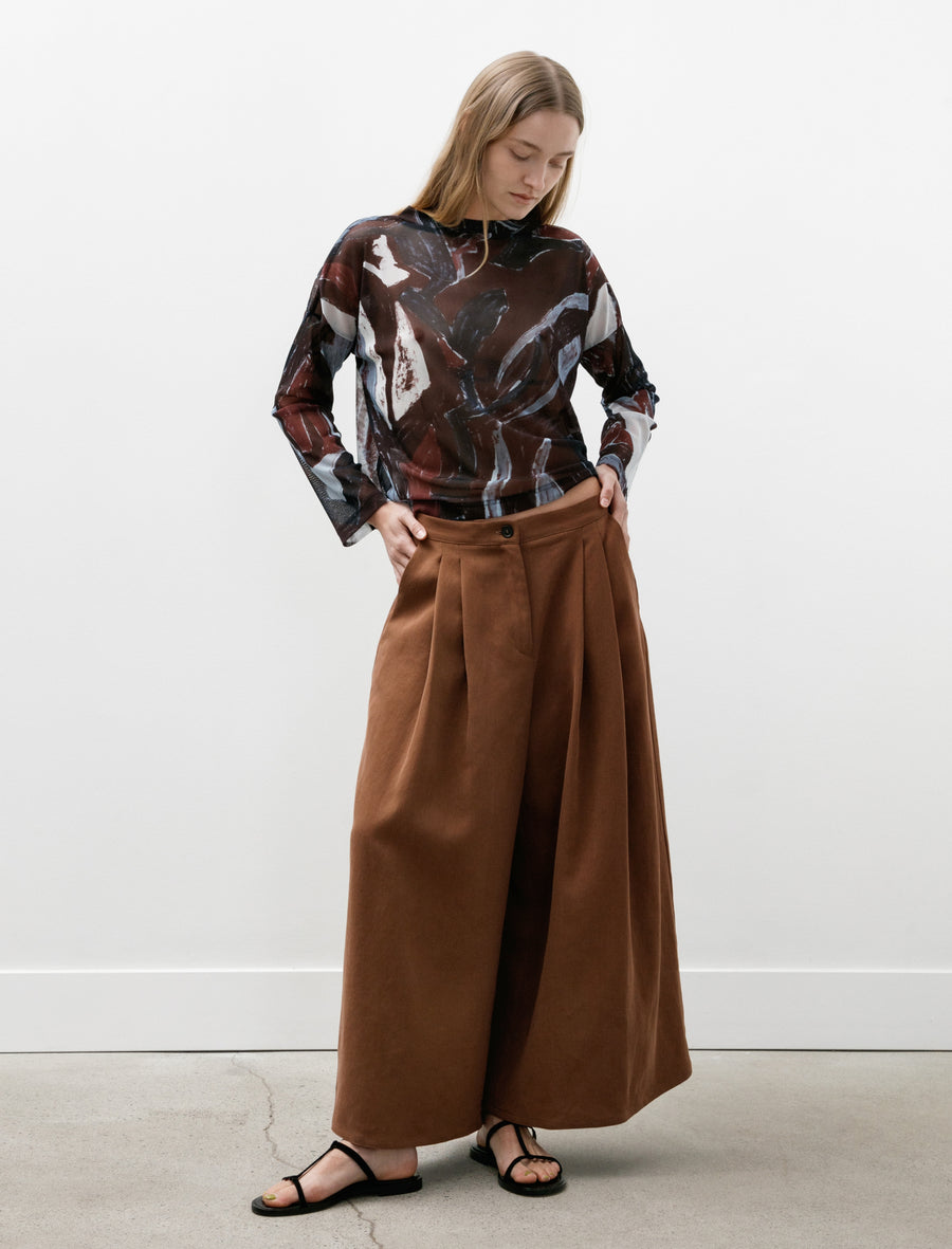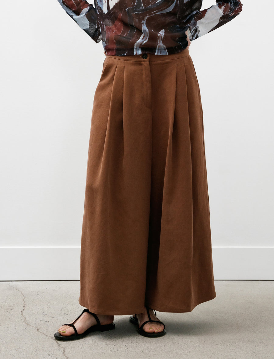 The perfect blend of effortless and sophisticated, these wide pants from Dusan are an absolute dream. Made entirely of linen, they have an elegant drape with a weight that you can subtly feel, paired with an incredibly soft hand. Brought to us in a stunning and versatile terracotta colour, they have a high waist and a wide and cropped fit through the legs. Pleating details at the hips and darting at the back give them a put-together and classic feel. Complete with side pockets, these trousers are sure to have you reaching for them constantly.