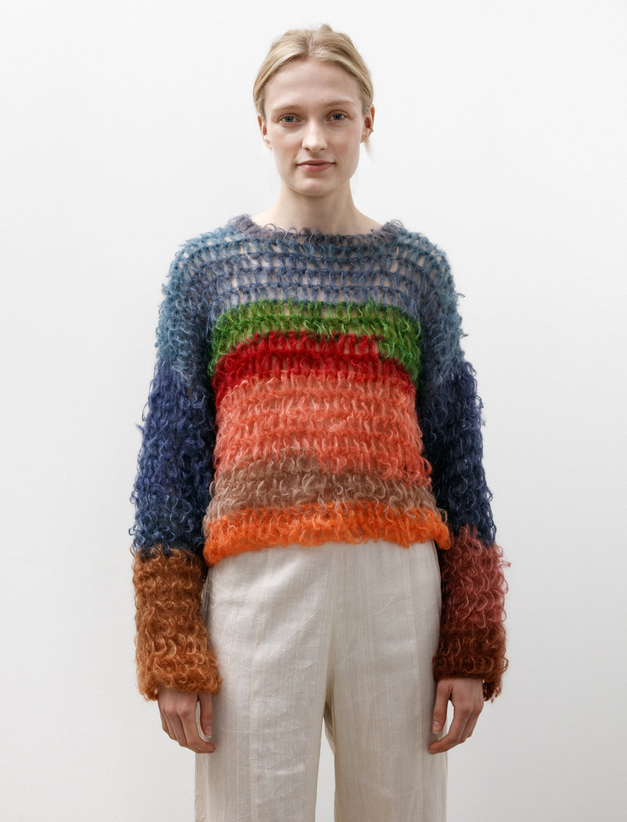 Cozy and charming, this pullover is truly the perfect knit to instantly bring some joy. Made of mohair and knit entirely by hand by founder Lindsay Smith, she dyes all the yarn herself in her Paris apartment to create these beautiful and vibrant colours. The silhouette is roomy through the body and sleeves for a relaxed, easy-going feel. Brought to us in a variety of colours, no two pullovers are the exact same to ensure a true one-of-a-kind design.