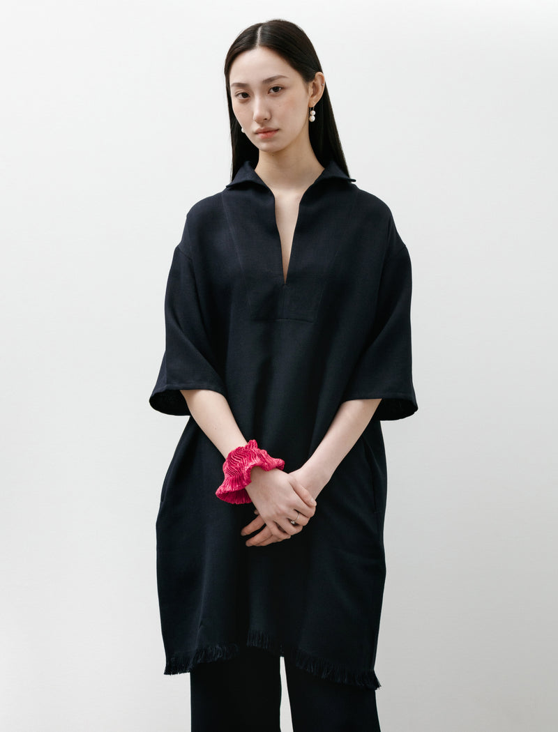 Simple wide leg trousers made from a lightweight, crisp cotton. The elasticized paper bag waist and roomy silhouette gives these trousers an easygoing, casual feel. They also have pockets on each side, large pleats along the front and a single seam down the front of each leg to add a touch of sophistication. Pair these with a tight fitting t-shirt to accentuate the billowing silhouette or keep the airy feel consistent with a roomy blouse.