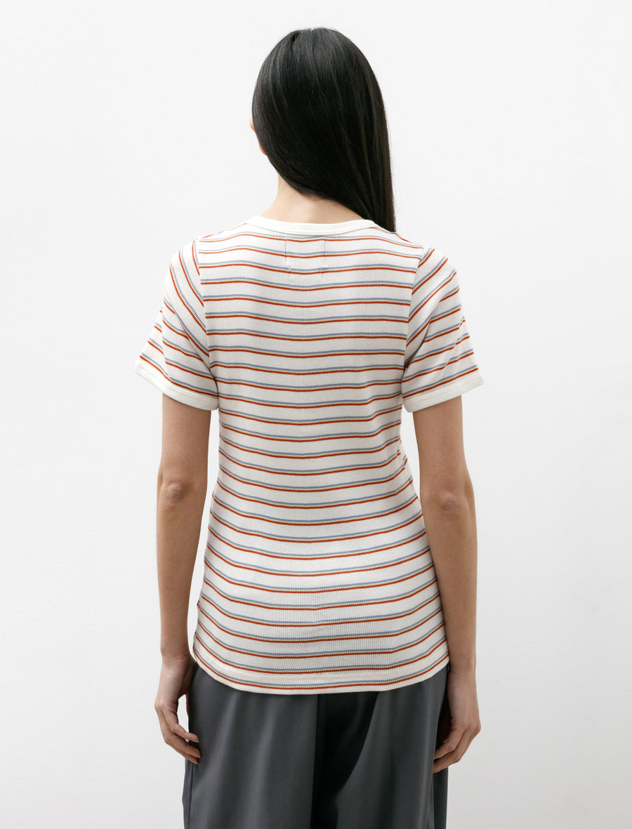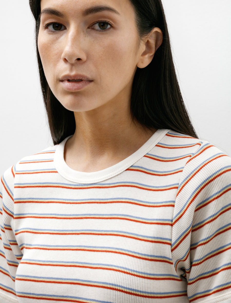 This cheerful t-shirt brings some vintage charm to your everyday outfit rotation. Made of Howlin’s signature ultra-soft fine rib cotton, it is lightweight with a buttery smooth feel against the skin. The off-white backdrop is contrasted by horizontal stripes of red, blue, and yellow for a playful touch. Complete with a round neckline and a straight fit, this sunny day staple is perfect for laid back days and easy layering alike.