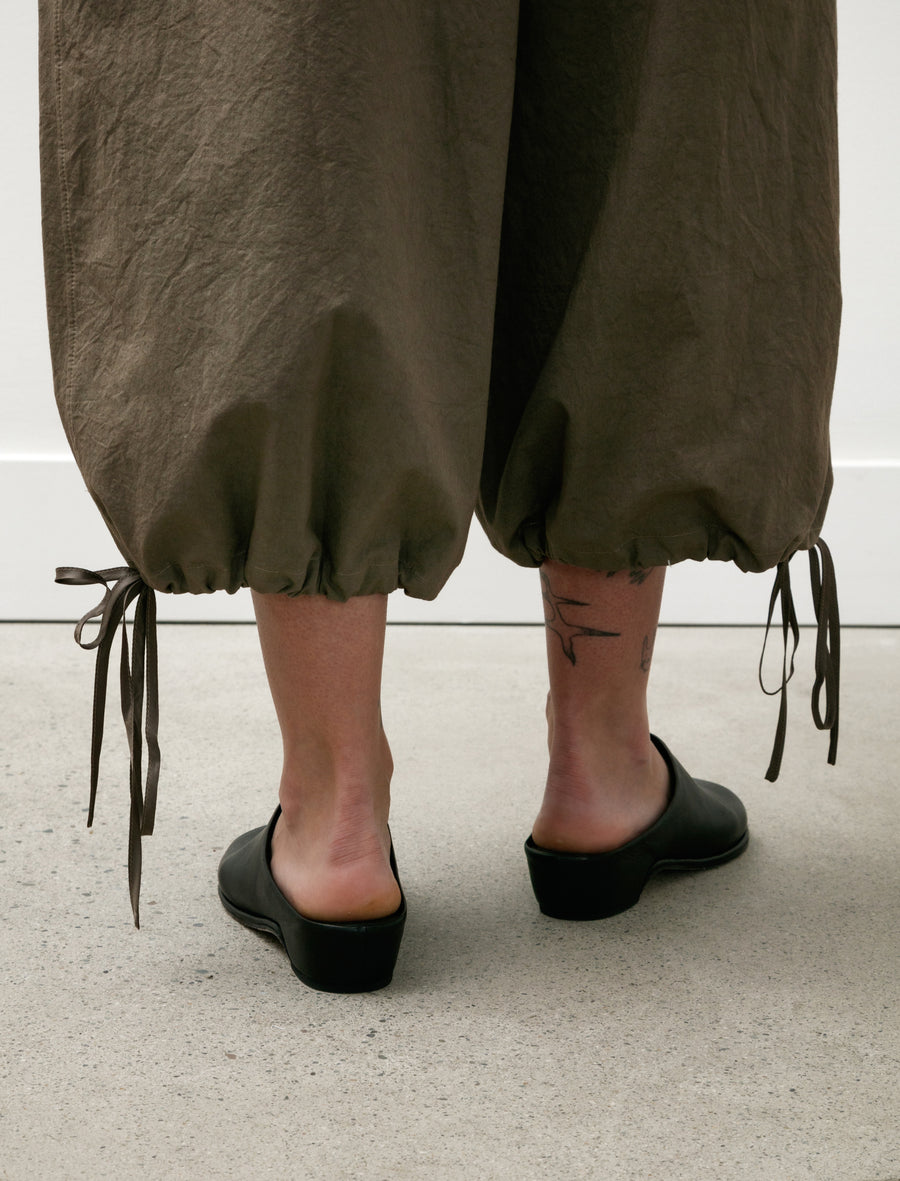 A shoe to take you from day to night. Handmade in Peru, the upper is made of a single piece of wrapped nappa leather, resulting in a beautifully streamlined look with a soft and supple feel. Complete with a natural rubber heel, these slides are just what you need to take you from a casual day on the town to a night out.