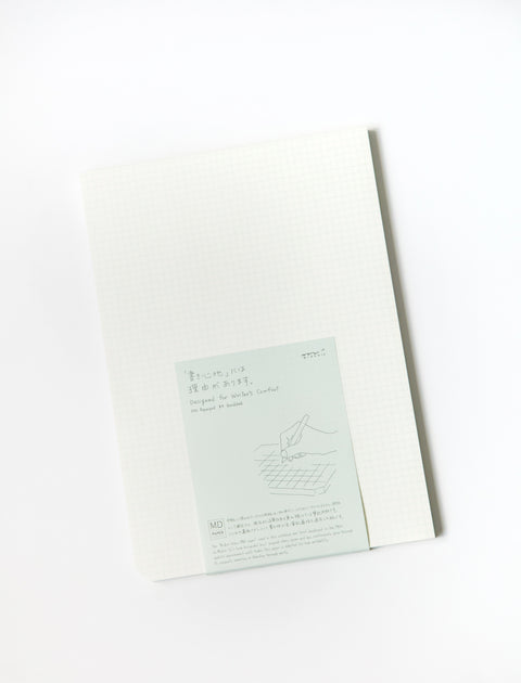 Large format paper pads perfect for sketching and notetaking. The high-quality paper first developed in 1960 by Midori is bleed-resistant, feather-resistant, and fountain-pen friendly. The pad is glued on both the vertical and horizontal edge with a thick mount, making it suitable for use in a landscape or portrait orientation. Available in blank or grid.