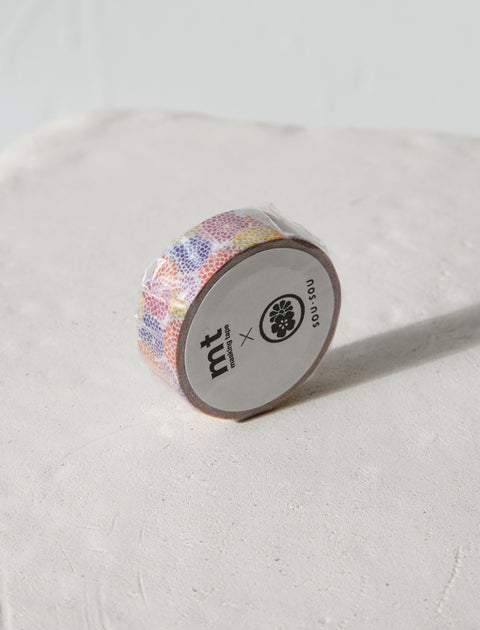 Designed by MT in collaboration with Kyoto textile brand SOU SOU. Produced at a dedicated factory that has been specializing in masking tape since 1923. MT was inspired to develop a colourful assortment of washi tapes to change our conceptual understanding of masking tape as a solely industrial product to one that is also suited to arts, crafts, and everyday life. Strong yet extremely thin with excellent adhesiveness while still being able to be removed easily with no residue.