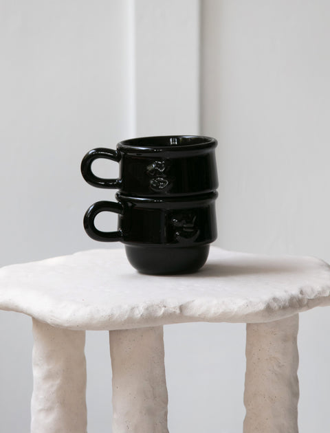 A set of two stackable cups crafted from durable stoneware in Portugal. Named the kantine cup as the form is reminiscent of cups one may find in school cafeterias.