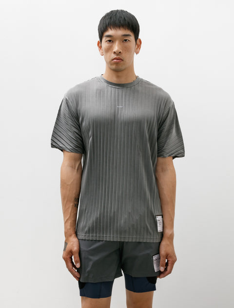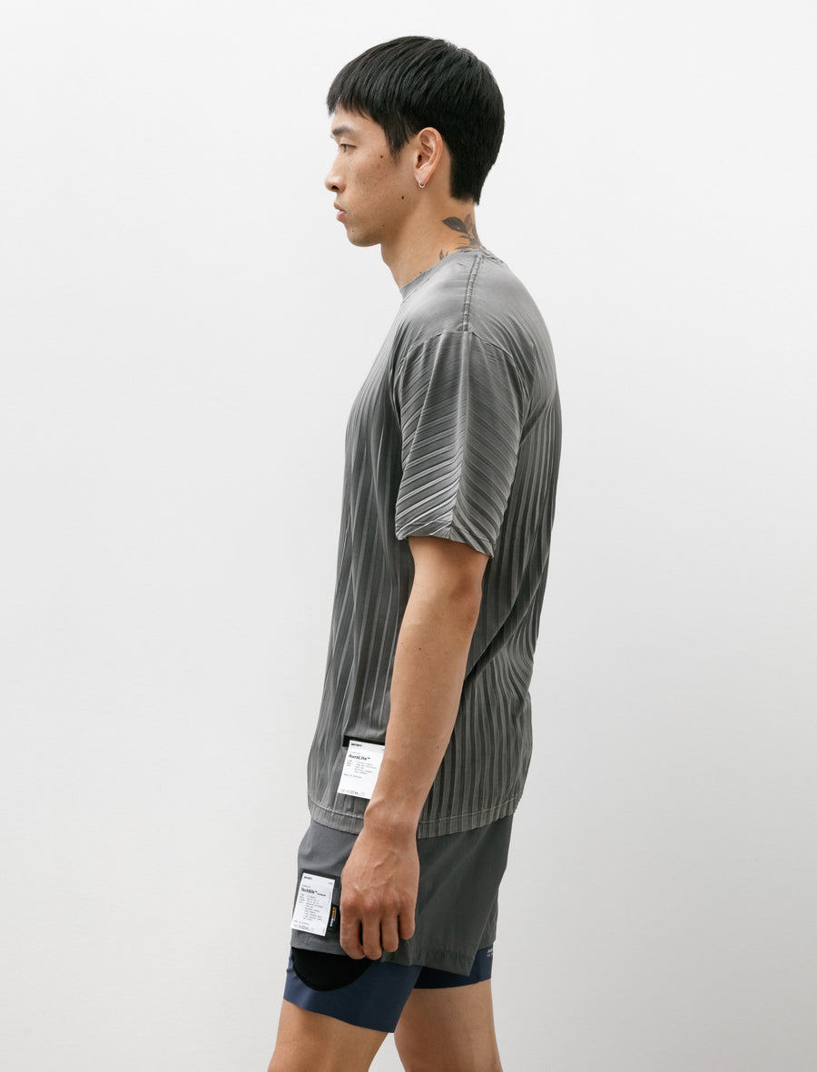 A newly introduced pleated edition of Satisfy's classic loose fitting running t-shirt cut from their perennial technical AuraLite jersey in a mineral dyed graphite grey. The AuraLite is exceptionally lightweight, leaving you free to move and feeling unrestricted while the pleats remove some tension from the surface of the skin. Completed with shoulder-to-shoulder seam taping at the back neckline for improved wearing comfort and minimal abrasion and a small reflective logo print for increased visibility.