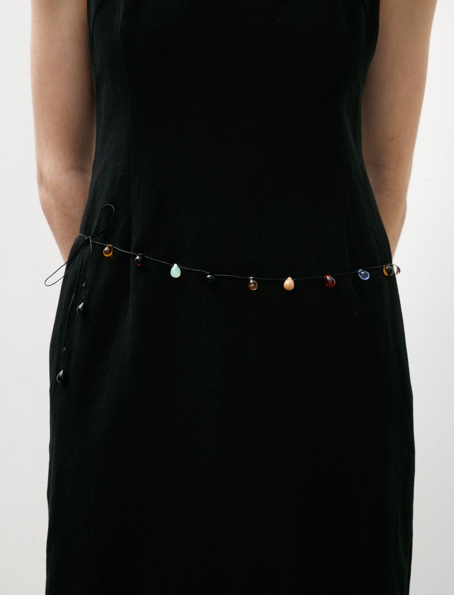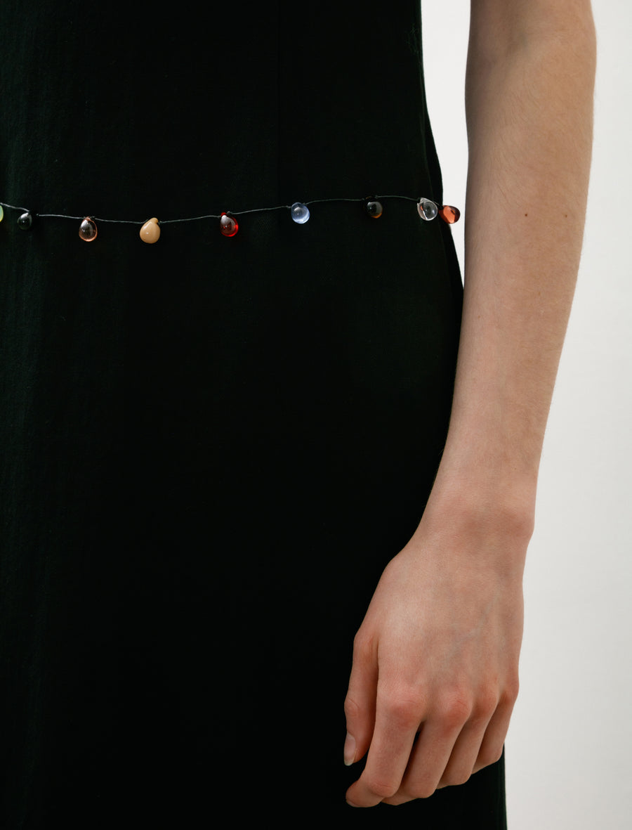 Instantly make any outfit more interesting by adding this beautiful belt from Sisi Joia. Handmade using waxed cotton thread and vintage Czech glass beads, the multi-coloured, dewy raindrops are a mix of iridescent, opaque, and transparent. Simply tie it around your waist for a perfect final touch.