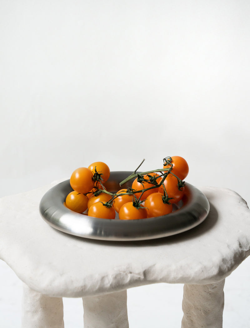 A sleek tray made from handspun stainless steel. The bold collection from Stine Keinicke is the epitome of style and function. Designed for food storage, preparation and serving, the curved shape along the edge makes it comfortable to grip for ease of use.